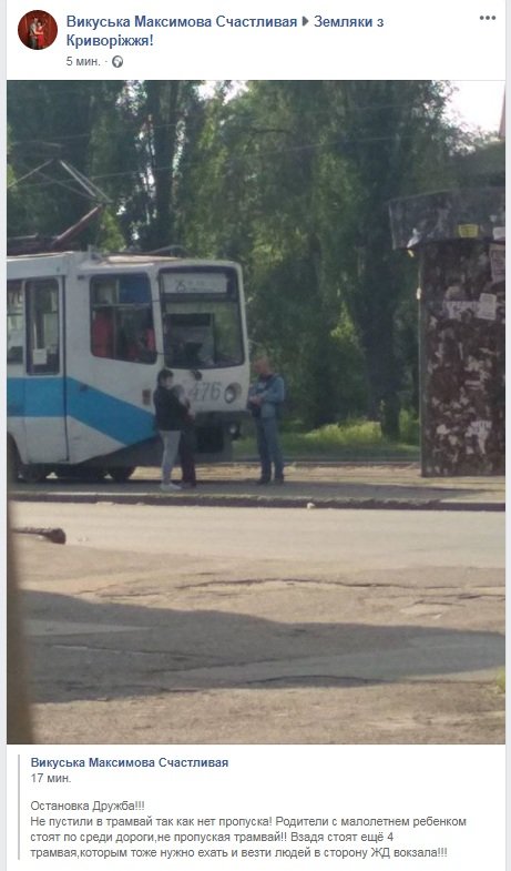 В трамвай не пустили родителей с ребенком, после чего они стали на трамвайное полотно перед вагоном, заблокировав таким образом проезд трамвая. 0564.ua »