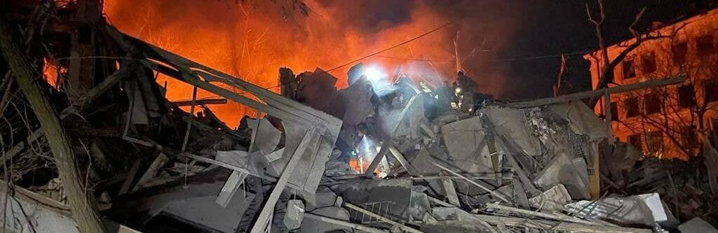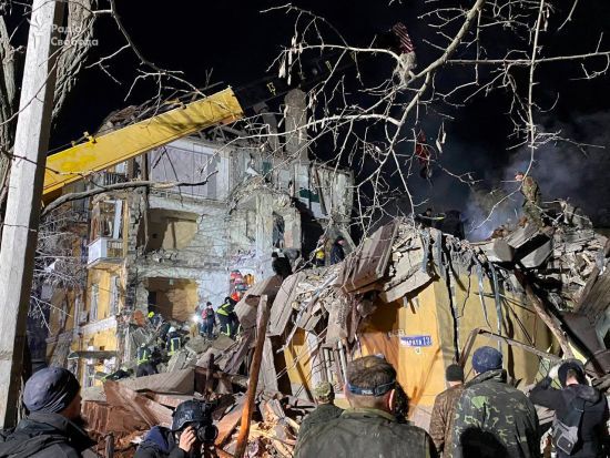 КИЇВ. 2 лютого. УНН. 1 лютого у м. Краматорськ внаслідок ворожого ракетного удару зруйновано з 4-го по 1-й поверхи чотириповерхового житлового будинку в межах одного під’їзду з послідуючим загоранням припаркованих автомобілів. Про це повідомляє УНН з посиланням на ДСНС. unn.com.ua »