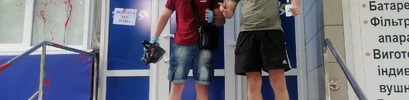 Неизвестные облили краской офис партии Медведчука 057.ua »