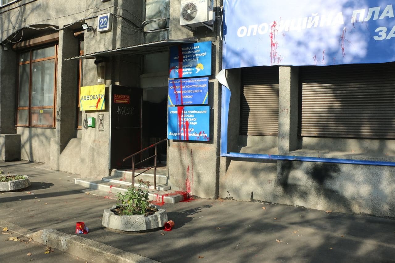 В Харькове неизвестные облили краской офис партии «Оппозиционная платформа - За жизнь» 057.ua »