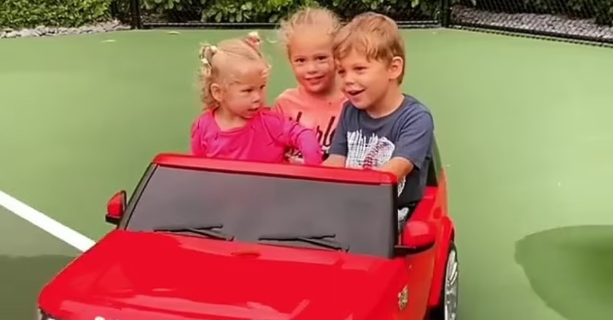 На записи Николас, Люси и Мэри катаются на красном игрушечном внедорожнике под песню своего отца. focus.ua »