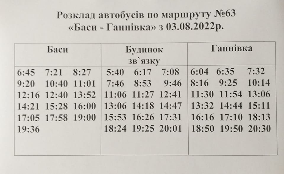 Автобус № 63 відновлює курсування до кінцевої зупинки «Ганнівка»