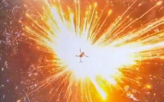 Вражеский квадрокоптер взрывается после атаки украинского дрона-сеткомета. ВИДЕО