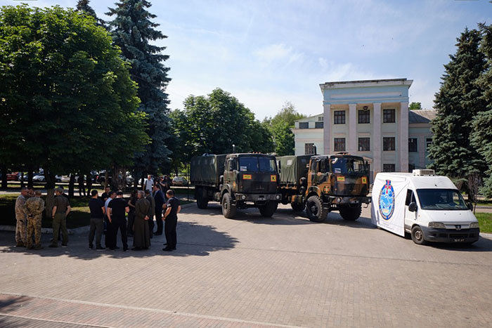 Гуманитарный груз сопровождают Полномочный Посол Латвийской Республики в Украине Юрис Пойканс и главный капеллан Национальных Вооруженных сил Латвии Елмарс Плявиньш. 06236.com.ua »