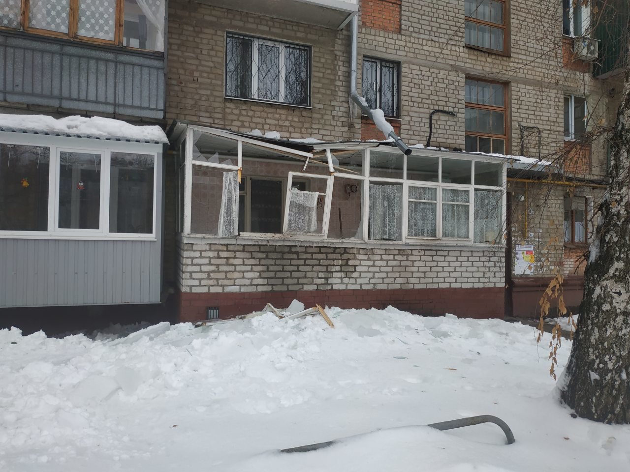 Когда бабушка была дома, с крыши пятого этажа обрушилась глыба льда, которая разнесла балкон пенсионерки 057.ua »