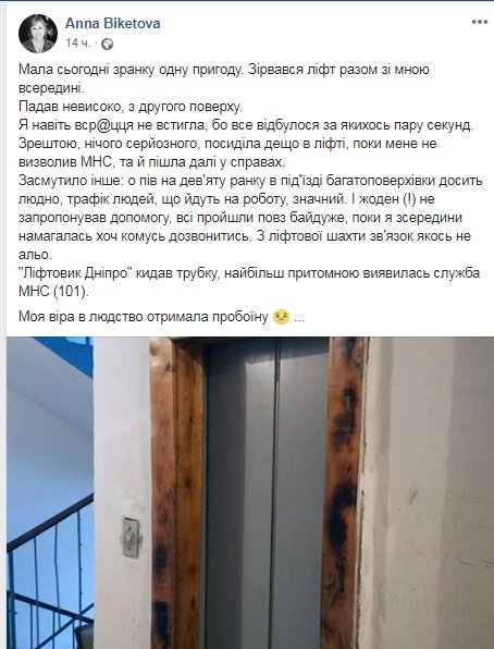 О повреждении лифта стало известно 6 августа 048.ua »