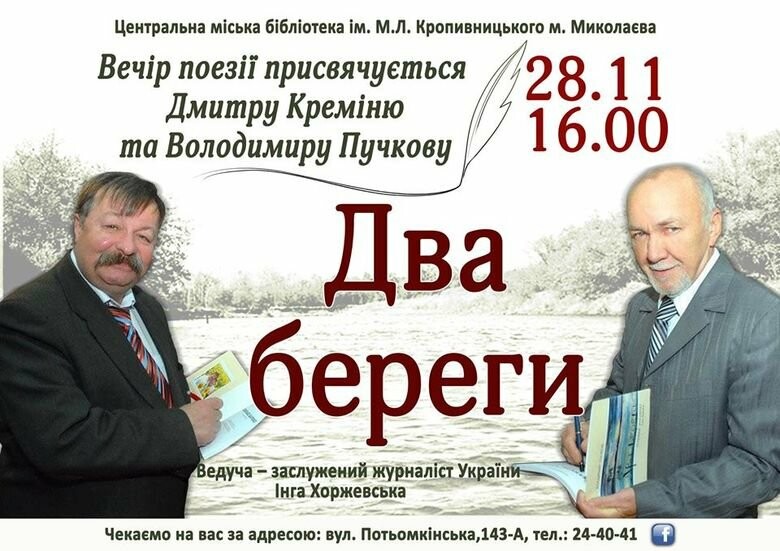 В Николаеве пройдет литературный вечер в честь Владимира Пучкова и Дмитрия Креминя. 0512.com.ua »