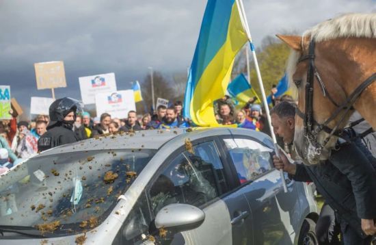 В Германии участников автопробега за РФ забросали лошадиным дерьмом
