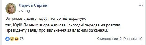 Луценко рассказал о реакции Порошенко на заявление об отставке