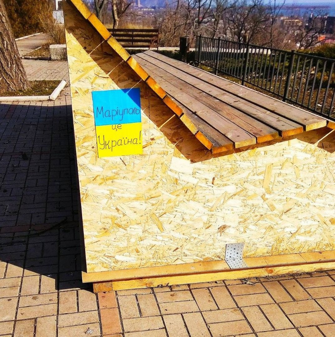 У центрі окупованого Маріуполя на вулиці Університетській окупанти намалювали мурал, який у соцмемрежах вже гучно назвали «Глаза победы». Але дивитися в ці «очі» дозволили не всім. Фото муралу оприлюд 0629.com.ua »