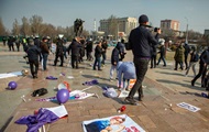 На акцию в Бишкеке напали неизвестные в масках. Милиция, приехавшая на место, начала задерживать пострадавших участниц акции. k.img.com.ua »