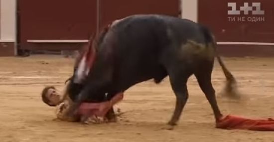 Бык подбросил матадора рогами и пытался его проткнуть. ru.tsn.ua »