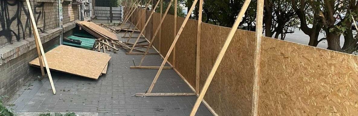 За словами місцевих мешканців, 24 серпня будинок обнесли будівельним парканом, який майже повністю перекриває тротуар. 44.ua »