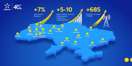 Мобильный оператор "Киевстар" увеличил территорию доступа к 4G связи на территории Киевской области в 75 населенных пунктах, установив дополнительные базовые станции на частотах 900 МГц. interfax.com.ua »