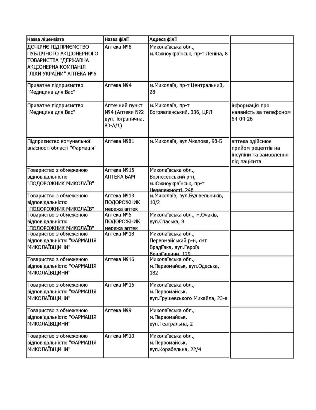 Аптеки у Миколаївскій області, які випускають інсулін