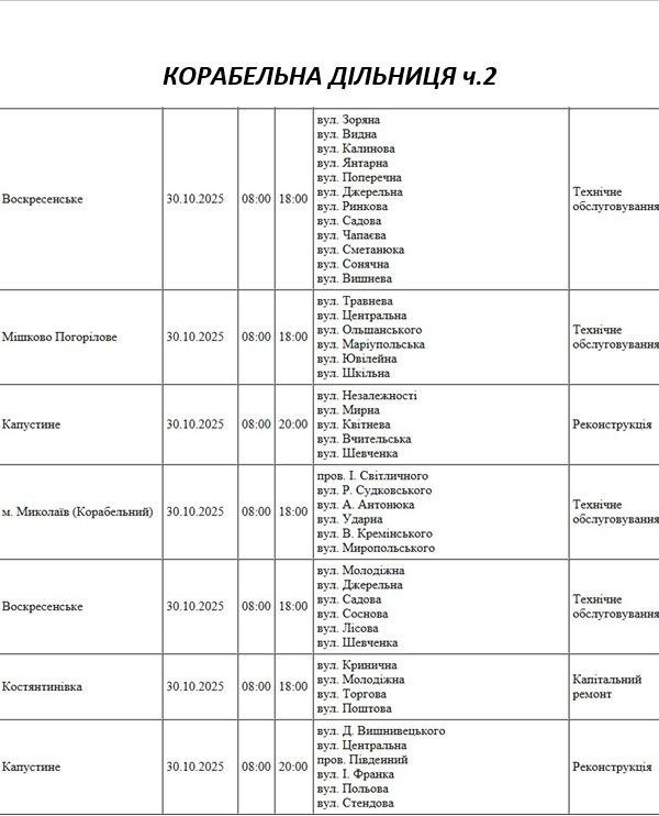 планові відключення світла - Миколаїв 0512.com.ua »