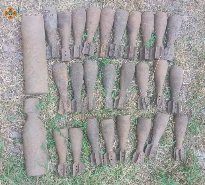 Небезпечні знахідки фахівці ідентифікували як п’ять артилерійських снарядів (122-мм, 100-мм, 45-мм), один вибухник та тридцять дві 50-мм мінометні міни 0542.ua »