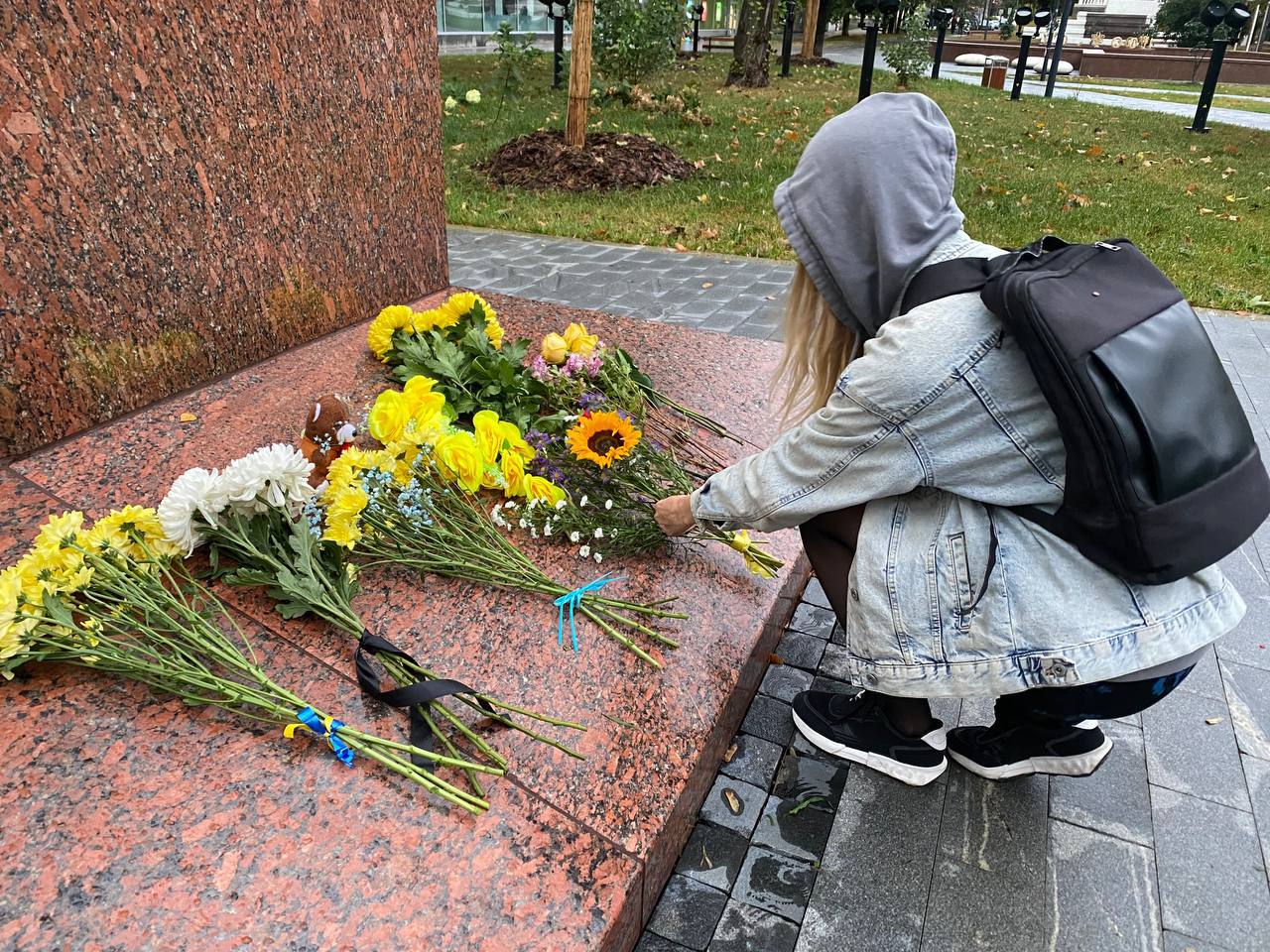 По словам журналистки, коммунальщики оперативно убирают цветы, которые москвичи приносят к памятнику, ставшему местом стихийного мемориала, после обстрела РФ села Гроза. focus.ua »