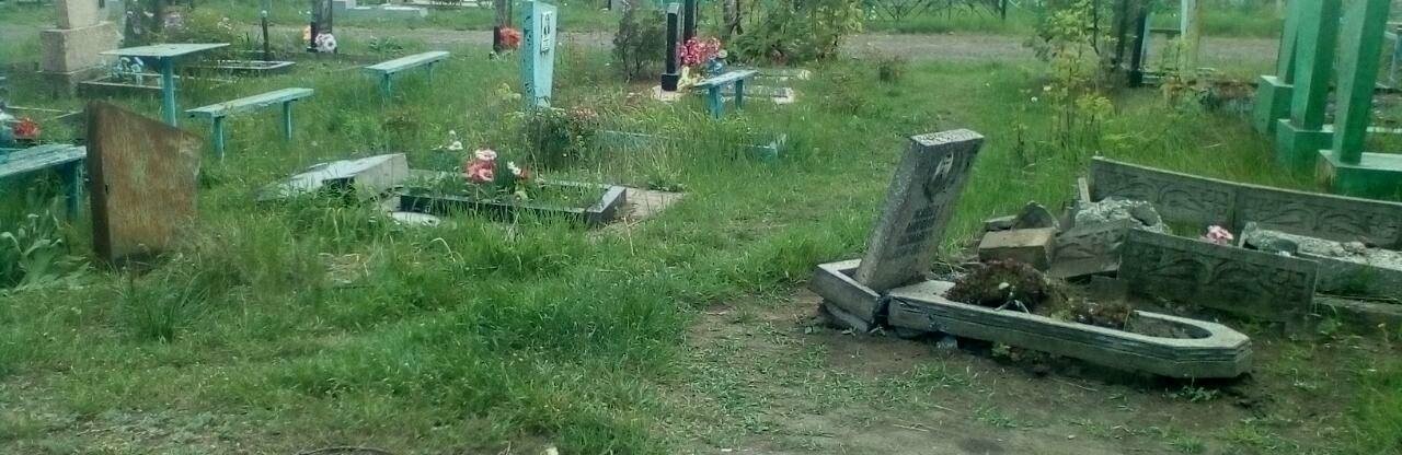 В Краматорске неизвестный водитель совершил ДТП на кладбище и снес надгробья нескольких могил