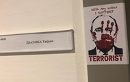 Наклейками с текстом "Своими голосами я поддерживаю террориста" отмечены кабинеты депутатов, не поддержавших признание России спонсором терроризма. korrespondent.net »