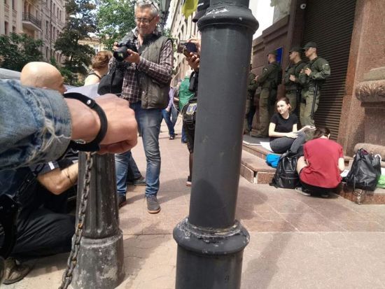 Нацкорпус продолжает свою акцию в центре столицы. На этот раз националисты решили приковать себя к забору, высказав свои требования к Луценко и правительству Украины. Однако боев с сотрудниками правоохранительных органов уже не было. dialog.ua »