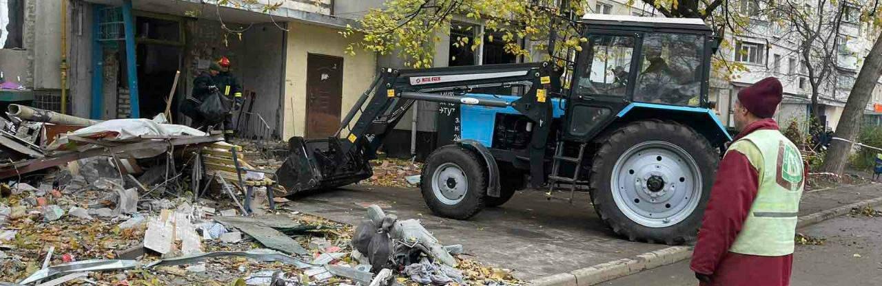 Комунальники прибирають після вчорашнього удару 057.ua »