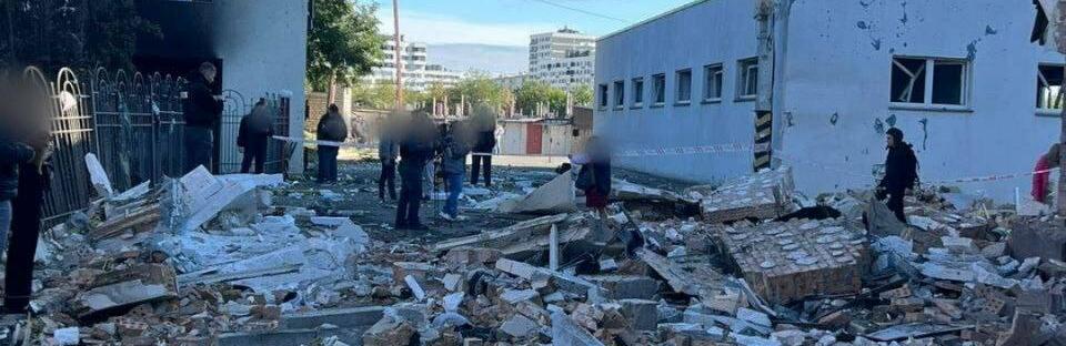 Друга ракета влучила у двір адміністративної будівлі. Попередньо, ніхто не постраждав. Інформація уточнюється. 057.ua »