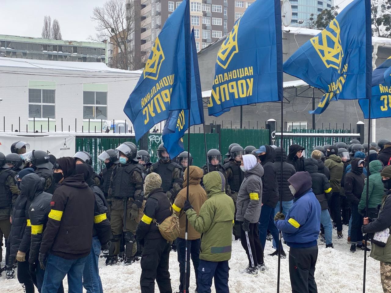 "Нацкорпус" на базе в центре Киеве заблокировал титушек, которых "ОПЗЖ" привезла в столицу, готовясь к провокациям по закрытым телеканалам Виктора Медведчука. dialog.ua »