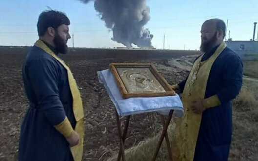 В Ростовской области священники РПЦ проводят молебен возле нефтебазы, которая горит четвертый день. censor.net »