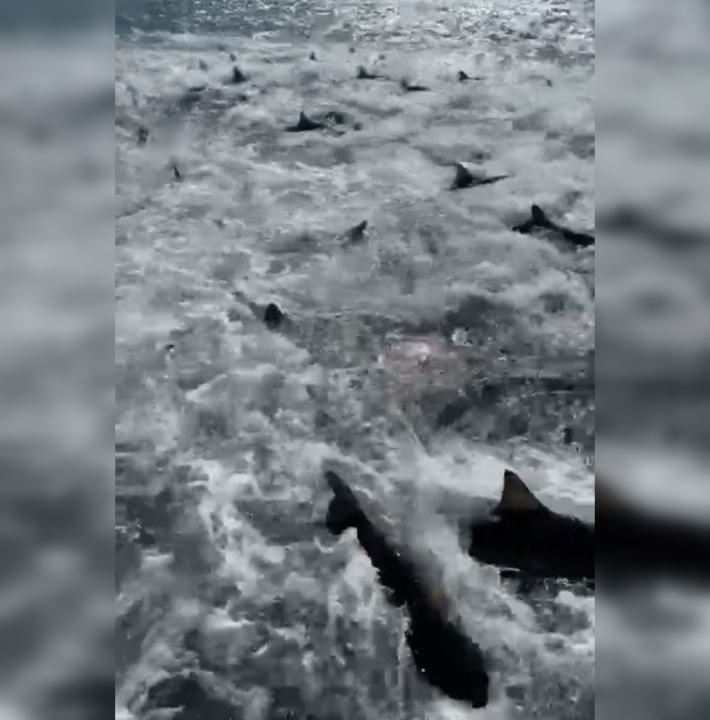Неистовое пиршество: у берегов Луизианы лодка попала в окружение сотен голодных акул (видео)