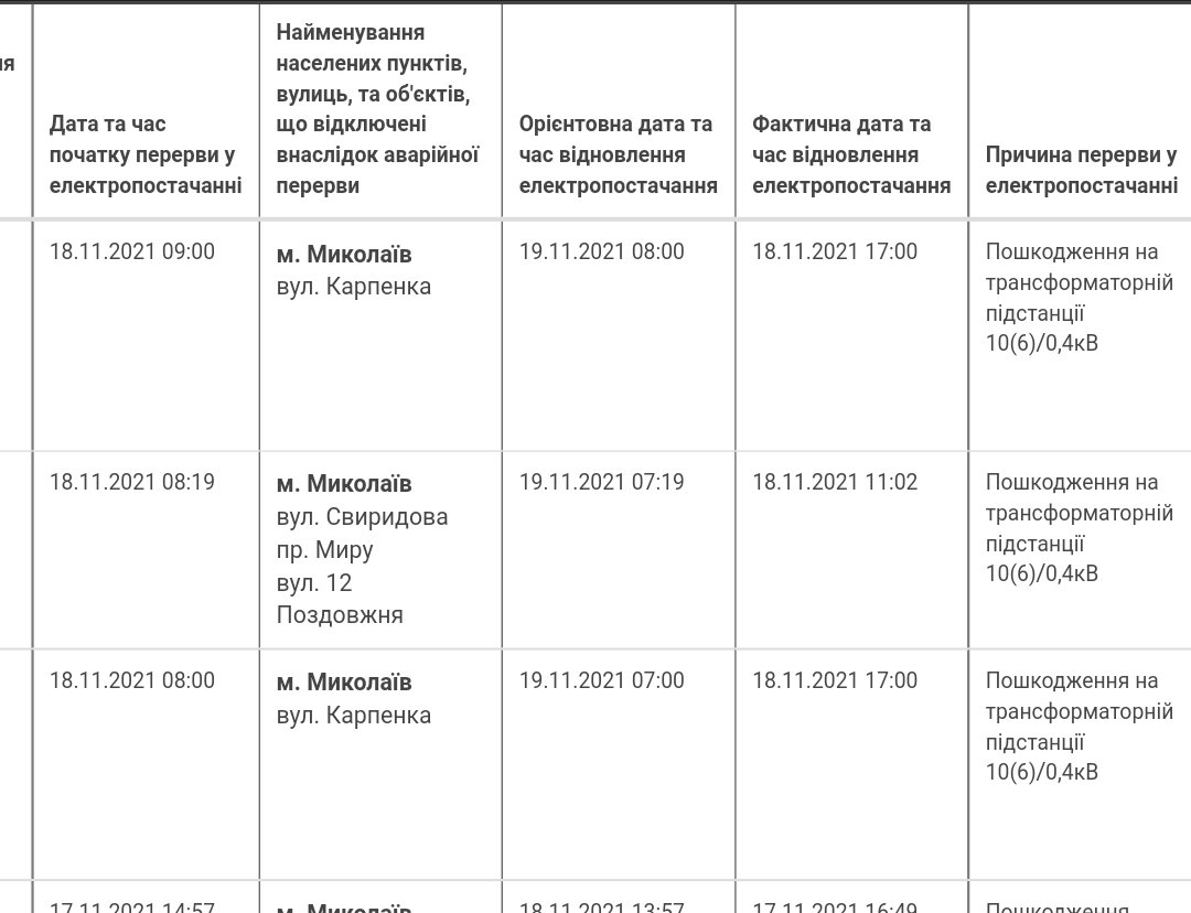 Отключение электроэнергии в Николаеве 0512.com.ua »