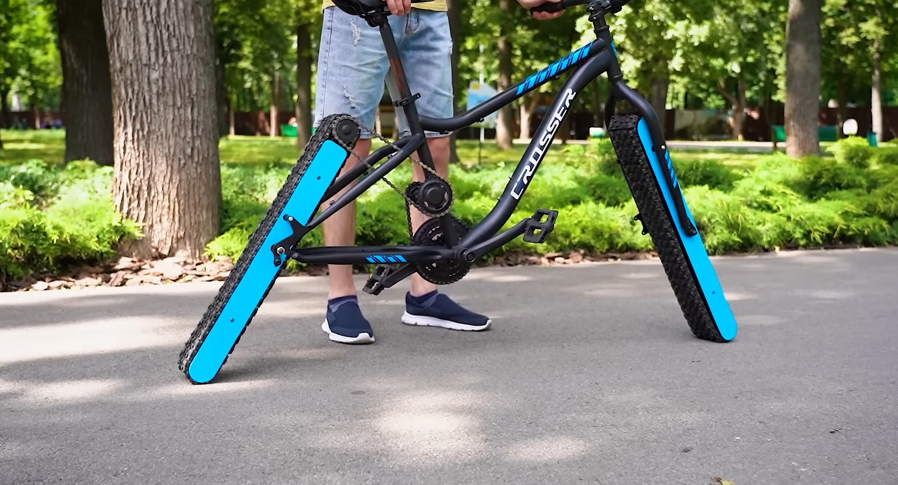 Энтузиаст самостоятельно доработал традиционный велосипед и создал для него гусеницы. Он показал, как такое транспортное средство передвигается по дорогам. focus.ua »
