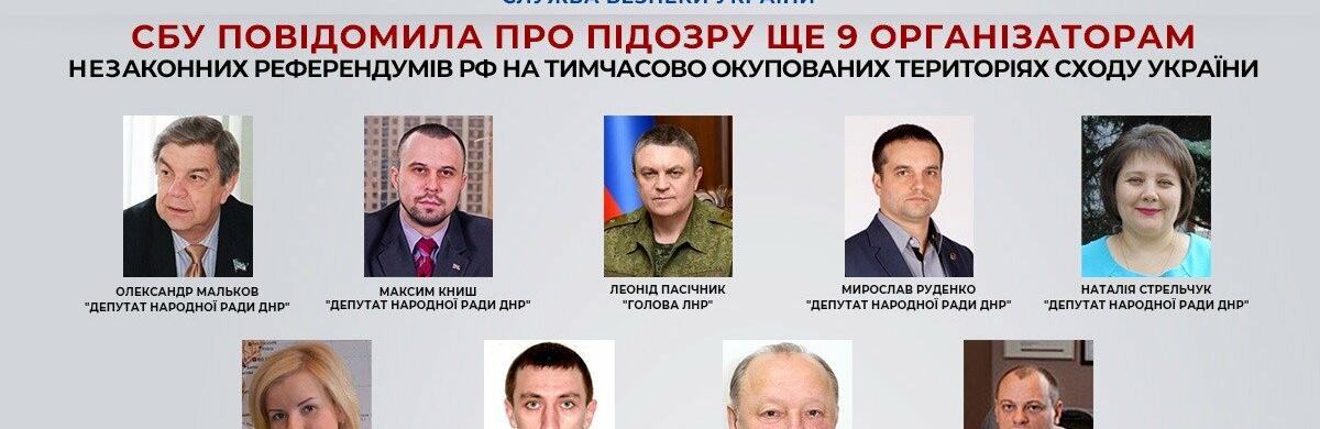 СБУ повідомила про підозру ще 9 організаторам незаконних референдумів рф на тимчасово окупованих територіях сходу України