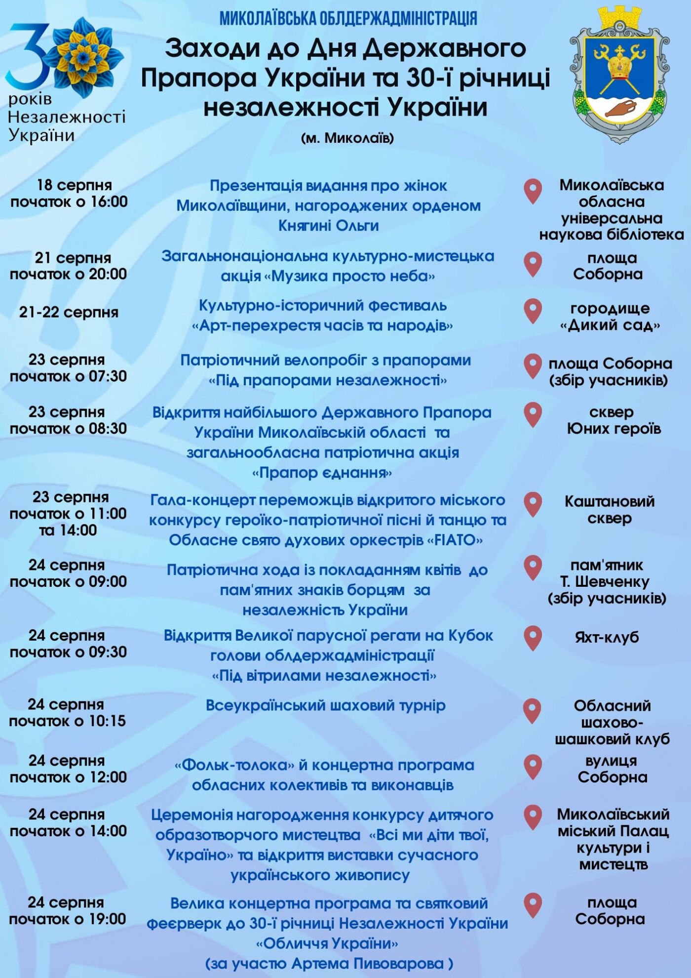 22, 23 и 24 августа в Мариуполе будут проходить праздничные мероприятия, посвященные Дню Независимости Украины 0629.com.ua »