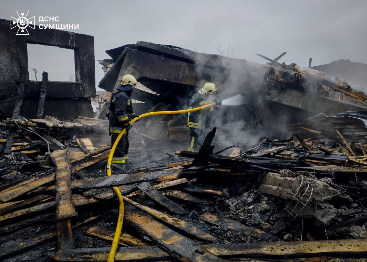 Всю ніч та впродовж дня у Сумському районі гасили масштабну пожежу, яку спричинив ворожий удар