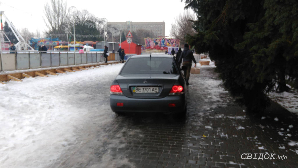 В центре Николаева водитель проехал по тротуару и припарковался у ресторана