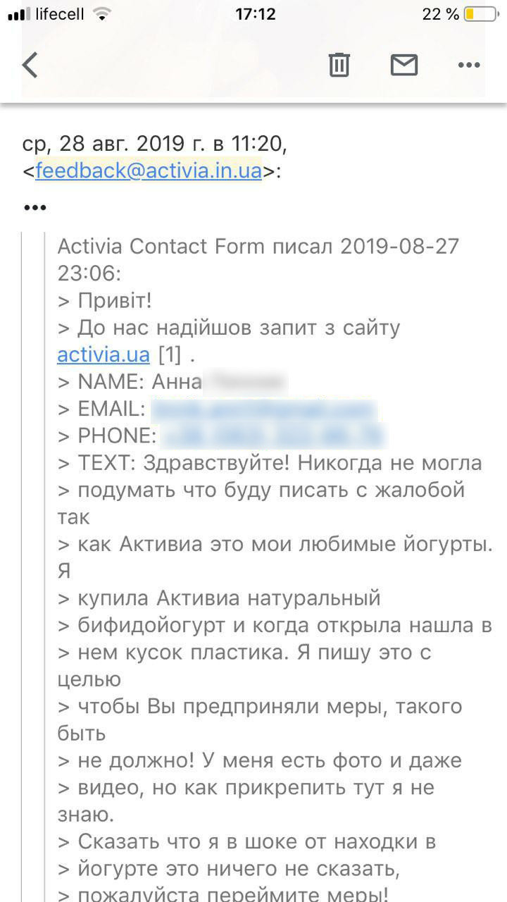 Девушка обратилась с жалобой к фирме-производителю 0512.com.ua »