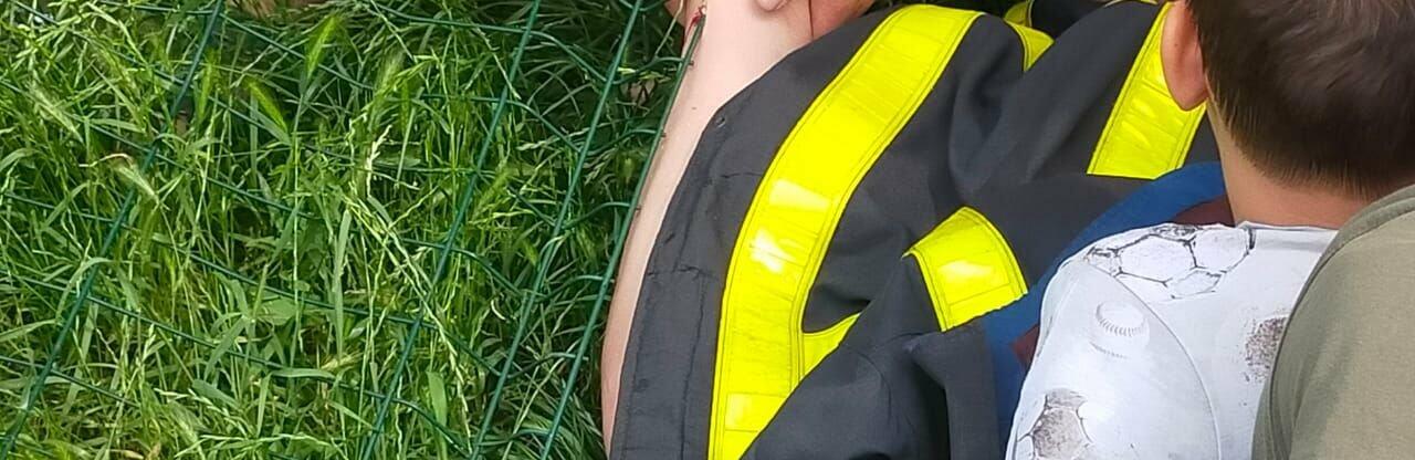Надзвичайники, за допомогою шанцевого інструменту, відрізали частину металевої решітки від конструкції паркану. 0564.ua »