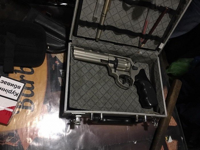 Полиция изъяла у задержанного предмет, похожий на карабин, два кастета, ножи и дымовую шашку. k.img.com.ua »