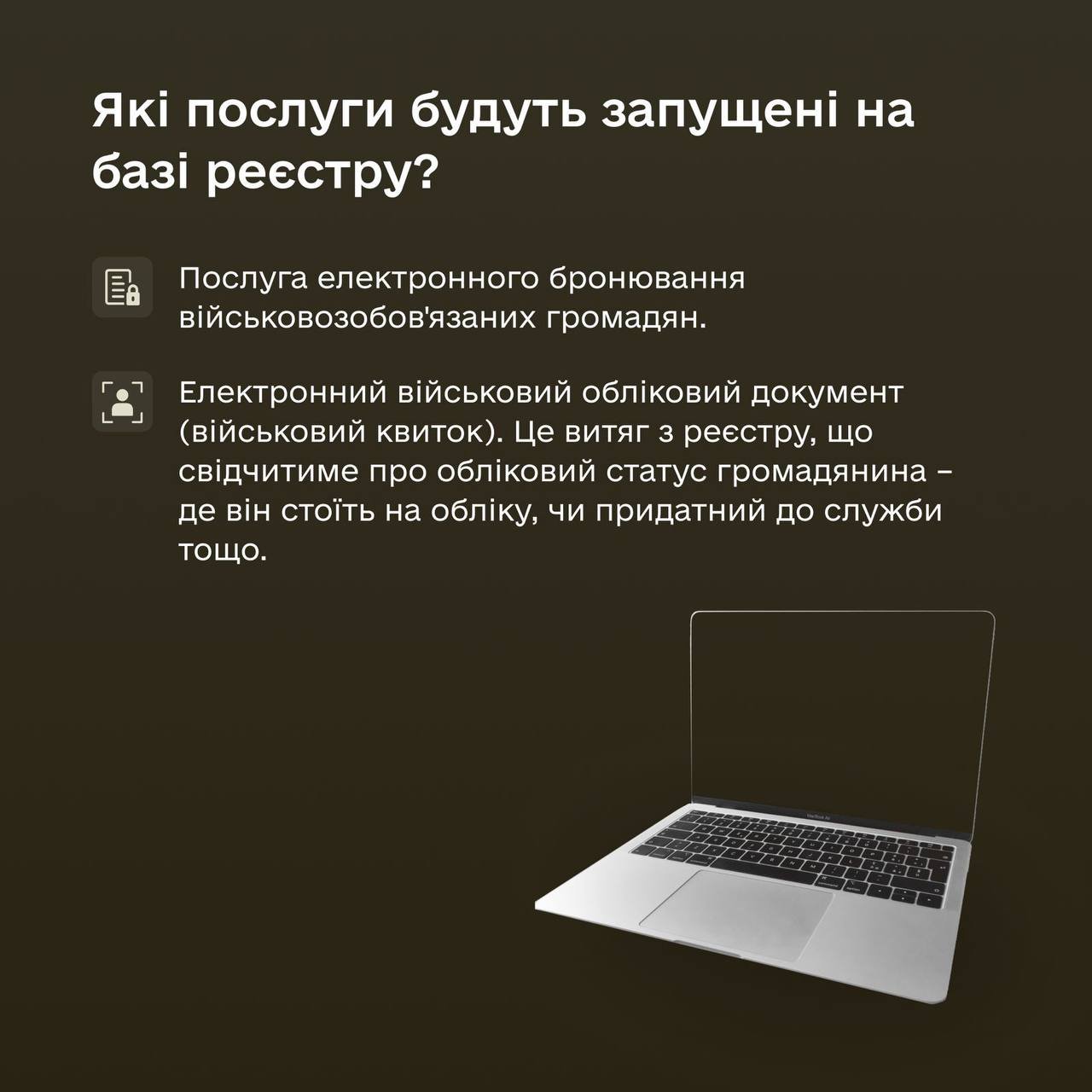 Реестр «Оберіг» — это инструмент для понимания государством «человеческого капитала», для воинского учета граждан и для обратной связи граждан и понимания, какие данные относительно воинского учета есть у государства. inforesist.org »