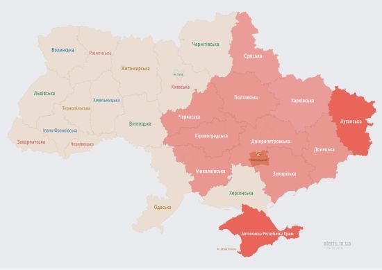 Воздушная тревога из-за движения БПЛА объявлена в Одесской, Николаевской и Херсонской областях. k.img.com.ua »