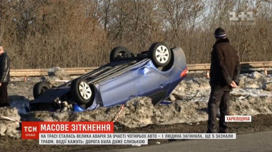 Автомобили слетали с обледеневшей трассы после резкого поворота. ru.tsn.ua »