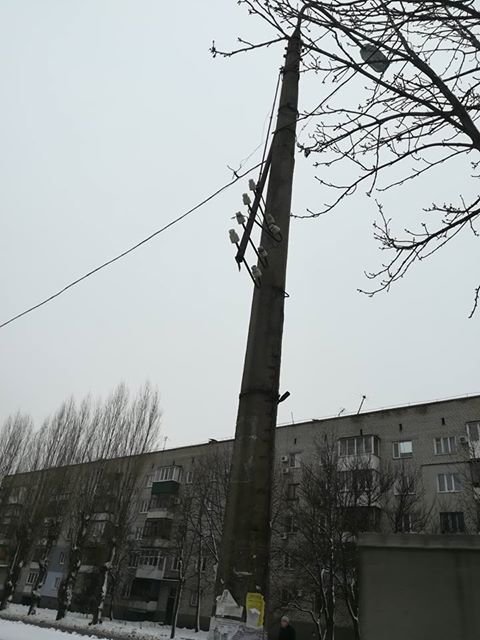 На опоре уличного освещения на улице Ватутина оборвано и зависло крепление с изоляторами. 0564.ua »