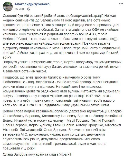 Александр Зубченко занимал должность замдиректора департамента информационной деятельности и коммуникации с общественностью и начальника управления коммуникации с общественностью ЗОГА. 061.ua »