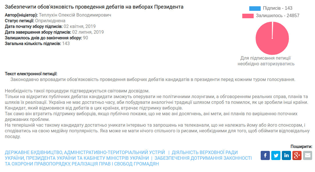 На сайте ВРУ зарегистрировали петицию о проведении дебатов 44.ua »