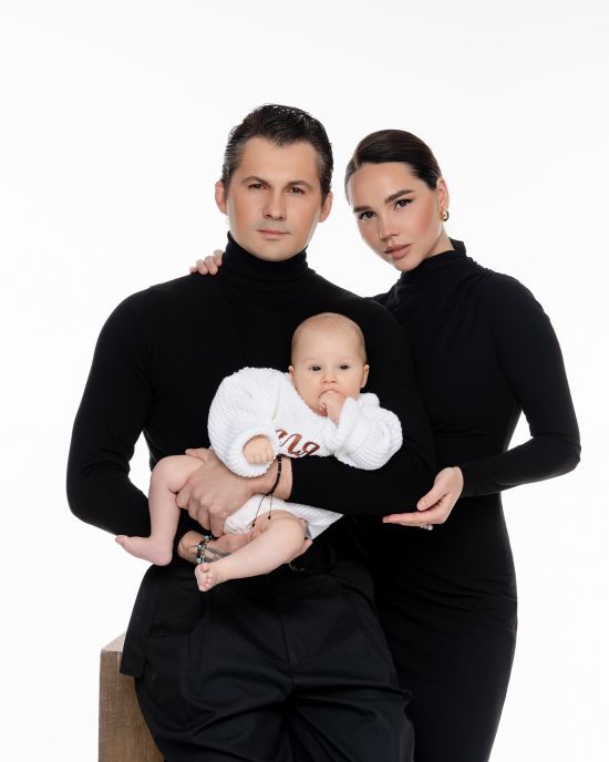 Евгений Кот с женой очаровали поцелуями 4-месячной дочери в изысканных образах