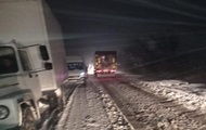 В очереди, растянувшейся на четыре километра, застряла сотня фур. Ситуацию спровоцировал гололед и заносы. k.img.com.ua »