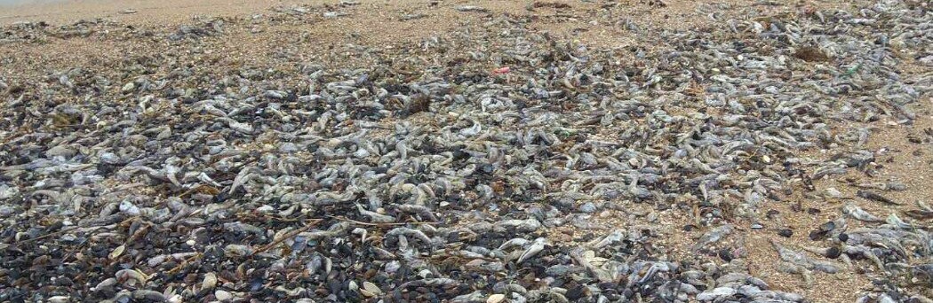 Пляжи Бердянска и Бердянского района укрылись одеялом из мертвой рыбы