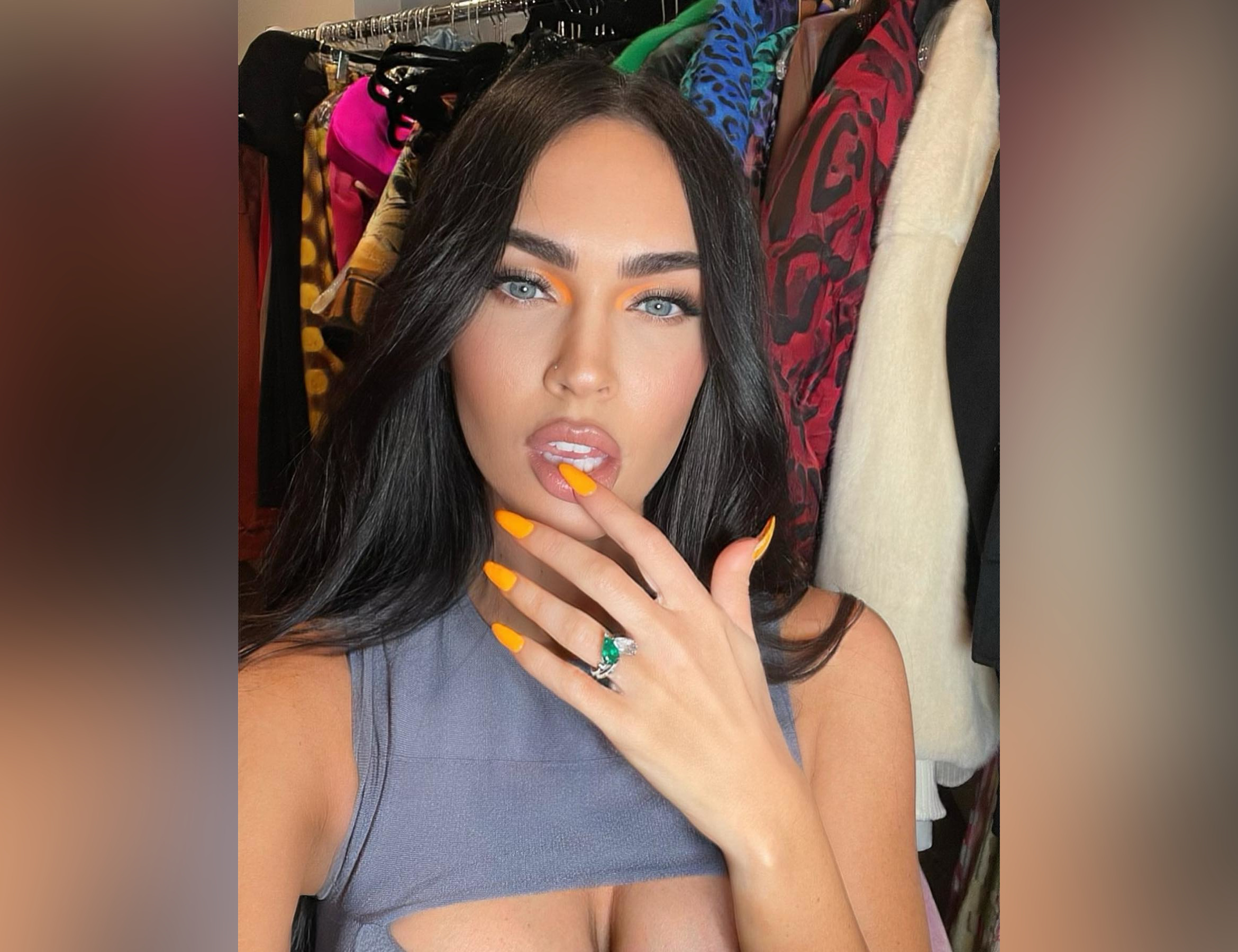 Желто-оранжевый маникюр стал ярким акцентом нарочито скромного образа модели, которая все же не преминула подчеркнуть свою сексуальность с помощью одежды. focus.ua »