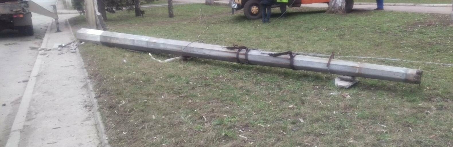 При падении столбы зацепили несколько автомобилей, образовались огромные пробки. ru.tsn.ua »